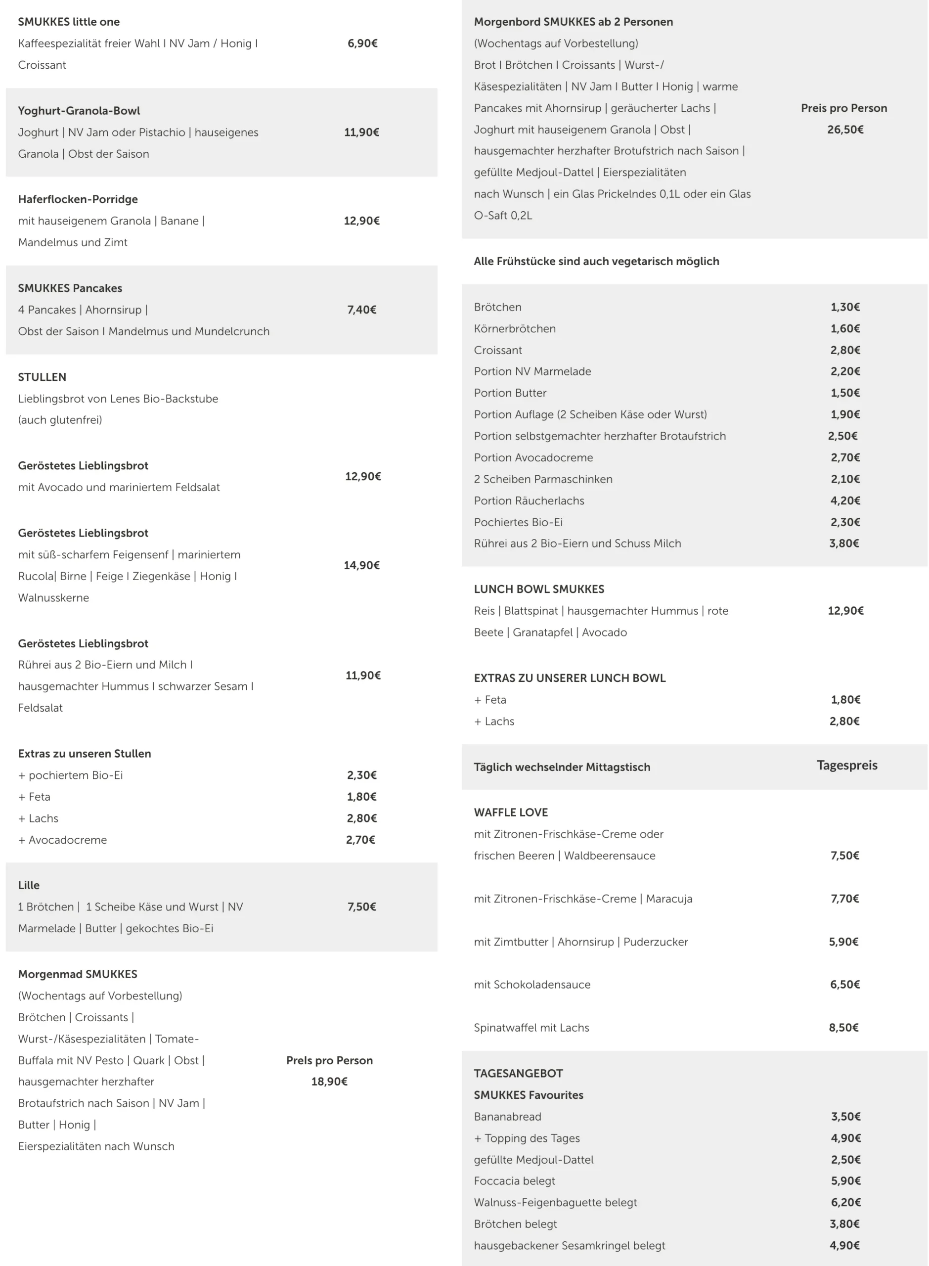 Im SMUKKES kannst Du aus Deinem Tag gleich etwas ganz Besonderes machen: Durch ein üppiges Frühstück im SMUKKES-Style, den genussreichen Mittagstisch oder die unschlagbaren Kaffee-und-Kuchen-Variationen am Nachmittag. Als Sahnehäubchen für euch haben wir dann noch unseren Concept Store.